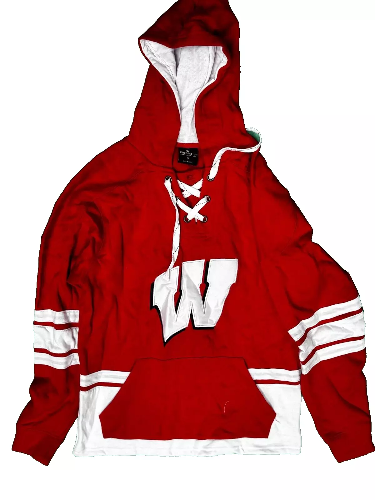 Colosseum Wisconsin Badgers Red Hockey-Style Hoodie – Size Medium – Lace-Up Pullover