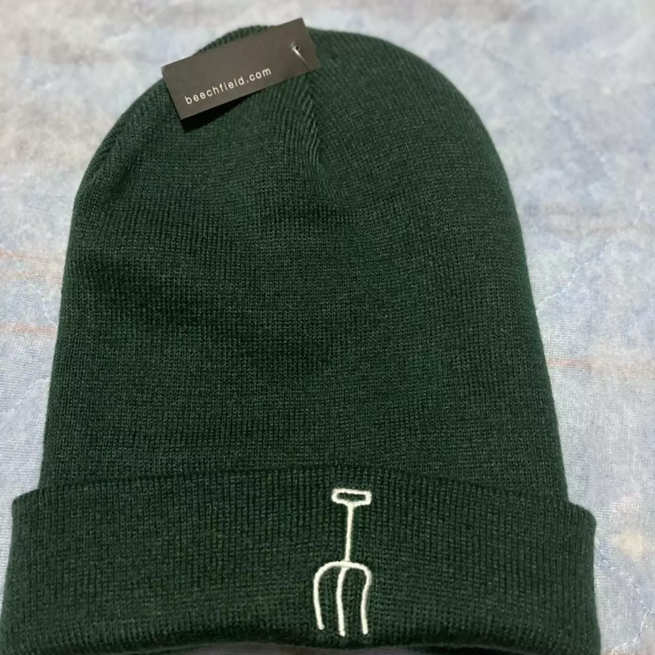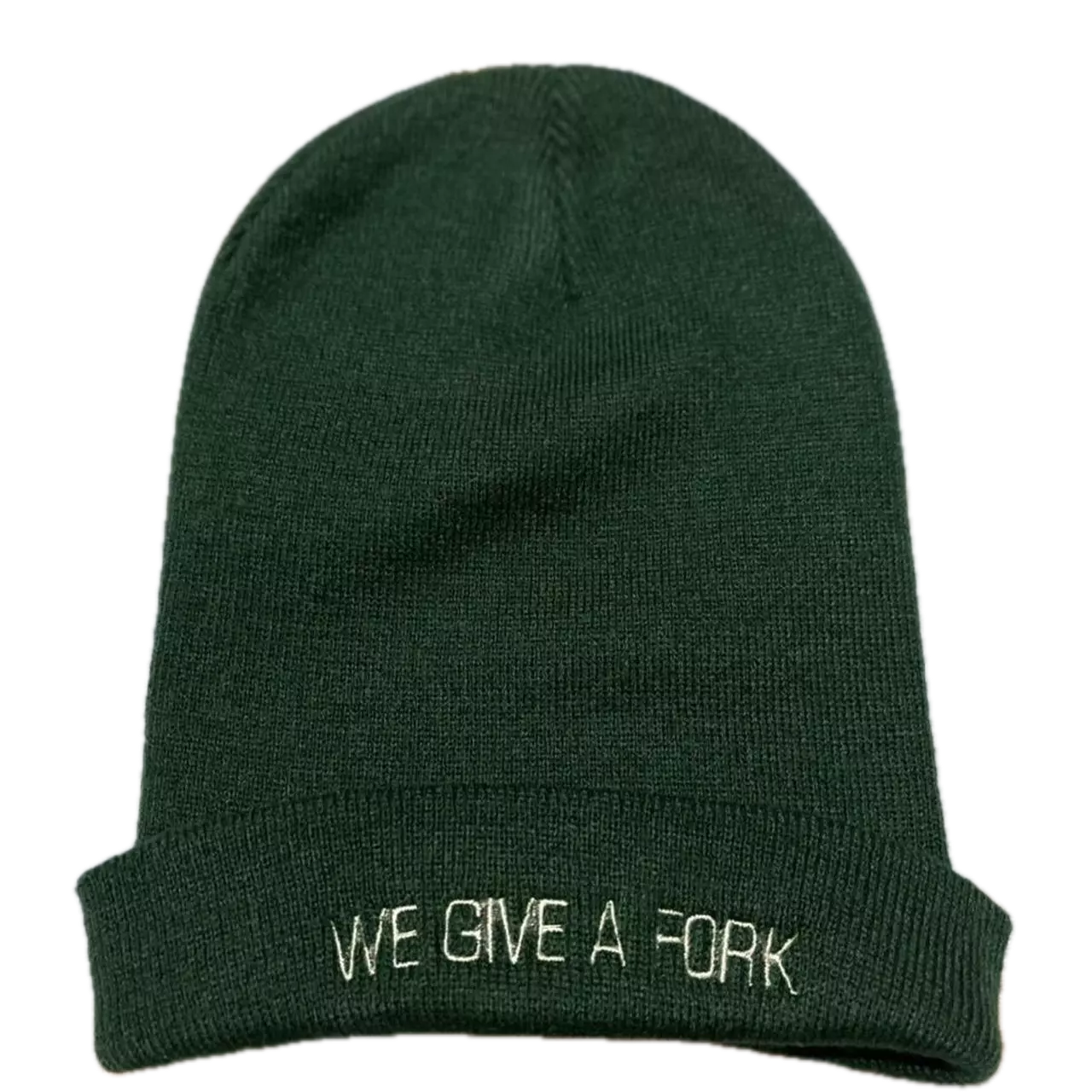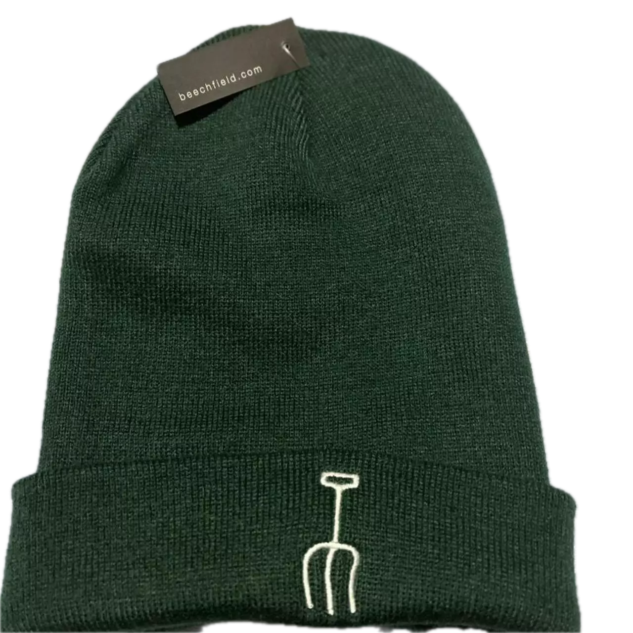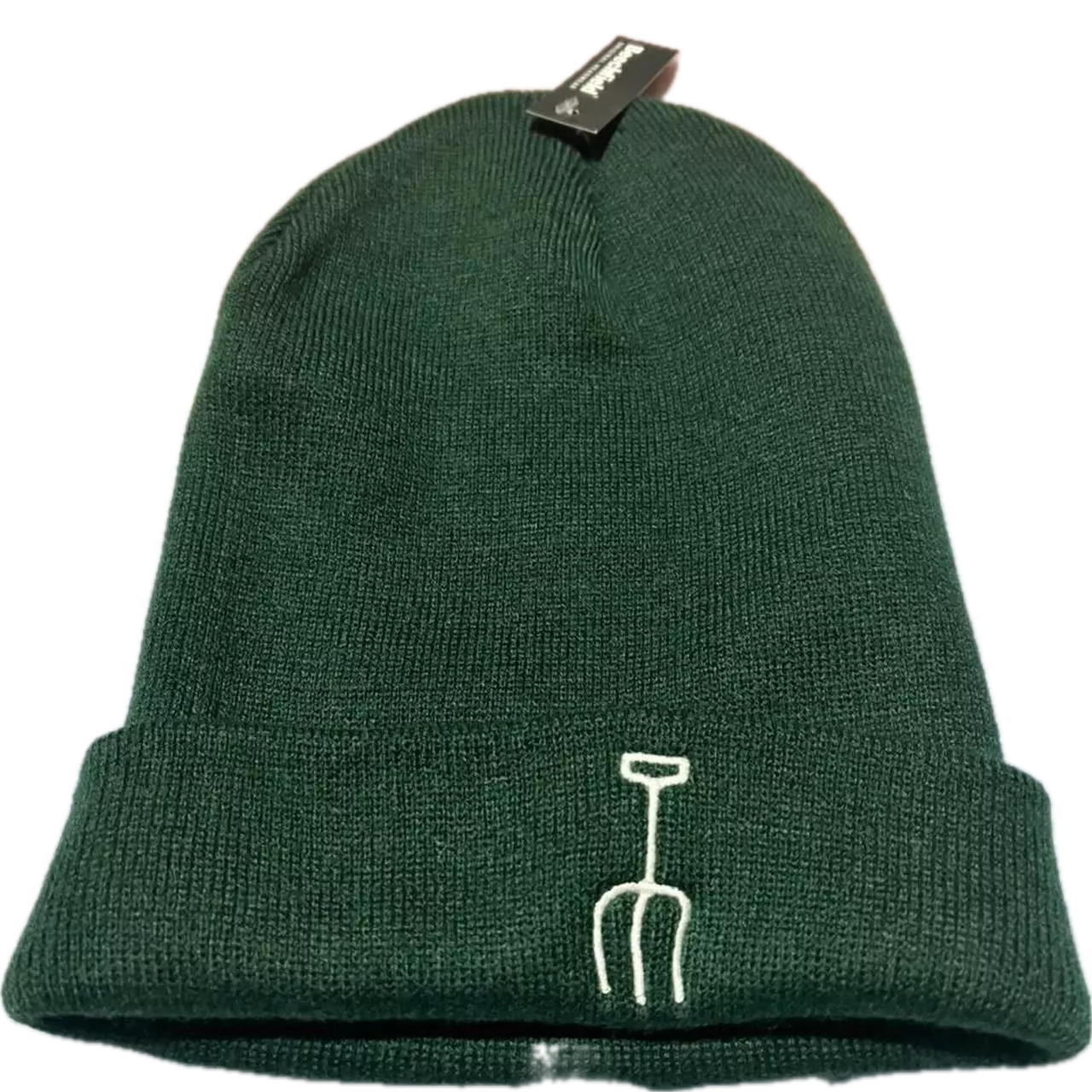 Stay warm with a touch of humour in this stylish Beechfield green knitted beanie featuring a double-sided embroidered design. One side displays the phrase “We Give A Fork”, while the other showcases a white pitchfork motif, combining comfort with a playful, eco-conscious message.
