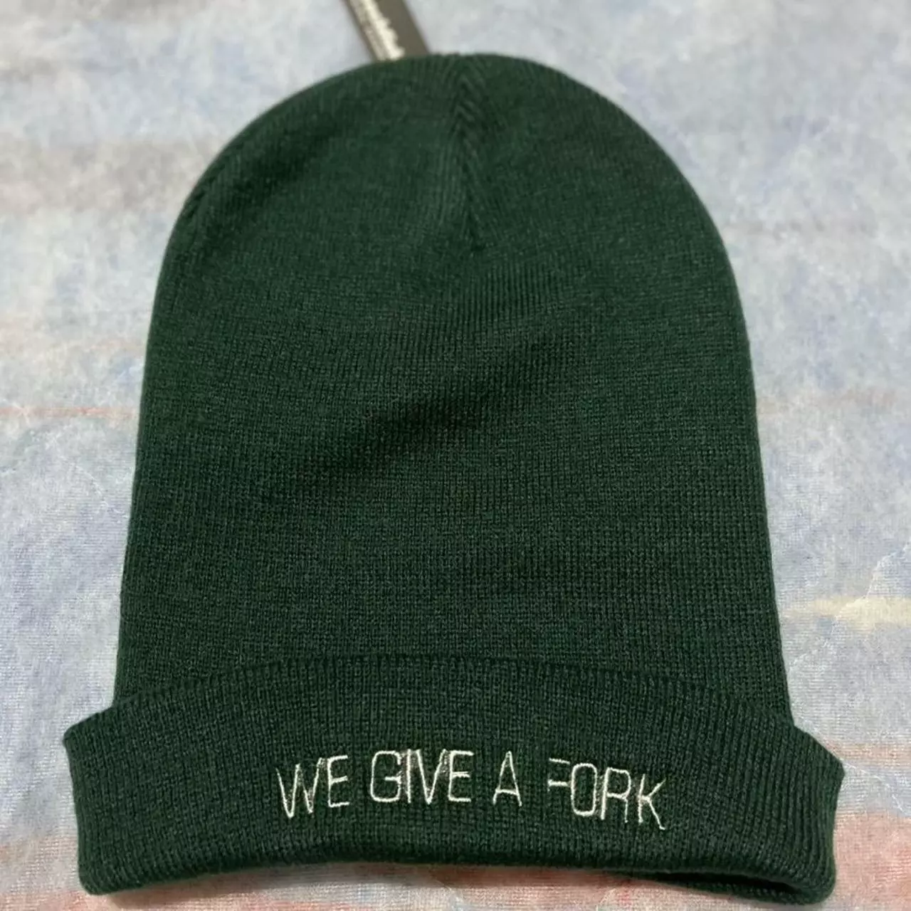 Double embroidery – “We Give A Fork” text on front, pitchfork symbol on reverse.