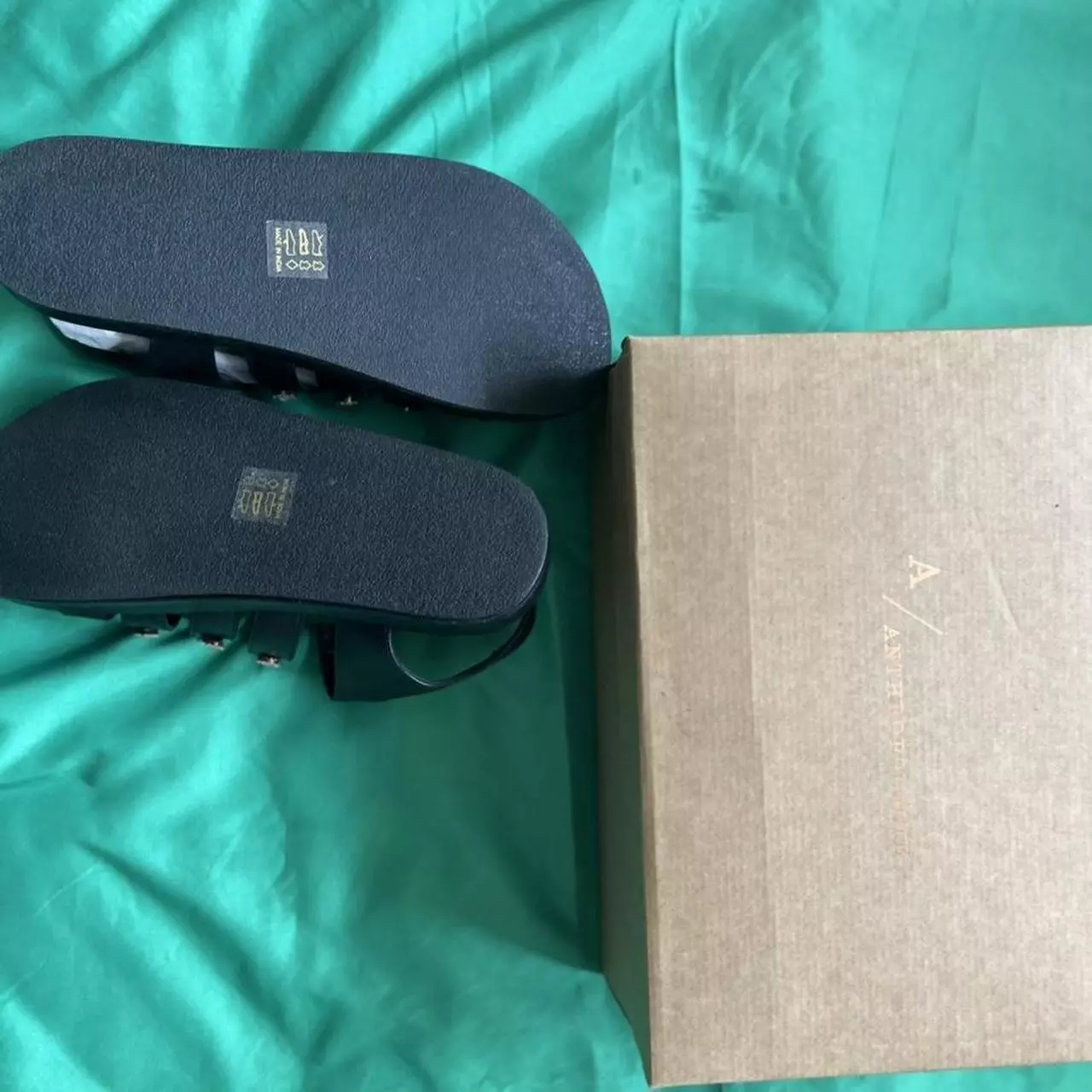 Anthropologie Maeve Black Sandals UK 5 Floral Embellished Buckle Flat Shoes