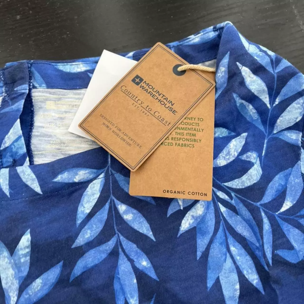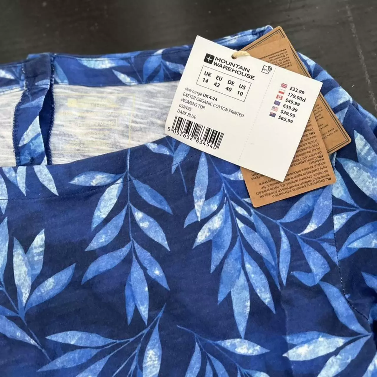 Mountain Warehouse Women’s Exeter Top – UK 14 Organic Cotton Blue Leaf Print